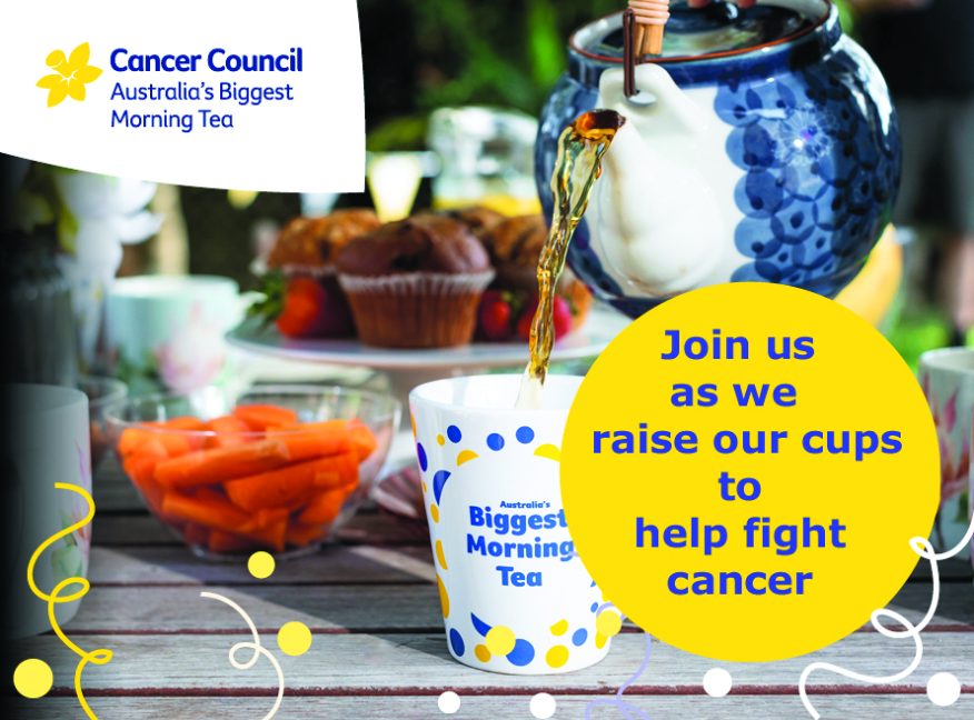 All are welcome as this is a community Biggest Morning Tea with all profits to go to the Cancer Council to fund ongoing support and research.