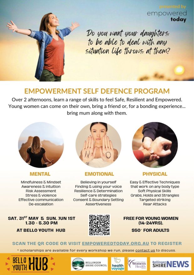 Empowerment self-defence program at Bello Youth Hub. Lets Make Tracks- Song writing and music production workshops. Lets make tracks Post navigation Hyde Street pavement works begin Sunday, expect delaysSummer camp fee hikes proposed for National Parks