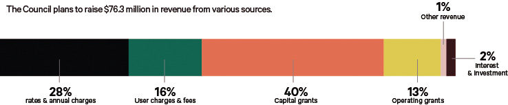 Council anticipates raising $76.3 million in revenue across the 2025–2026 financial year, drawn from various sources: