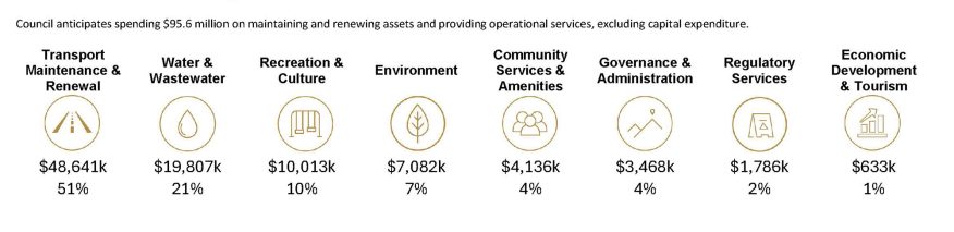 During the upcoming financial year, Council anticipates spending $95.6 million on maintaining and renewing assets and delivering services, with key investment areas including: