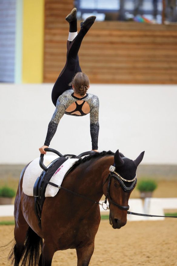 She said it involves executing a series of exercises and movements on a moving horse at a walk or canter, with vaulters performing compulsory and freestyle routines to music.