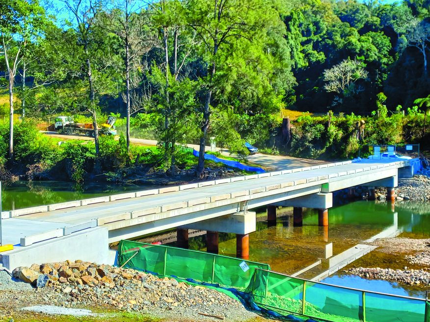 Duffys Bridge on Kalang Road is still under construction, with the intention to switch traffic onto the bridge in October once finishing works are complete.