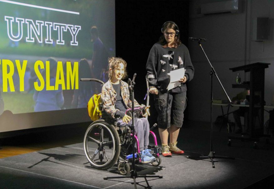 A young duo, Finn Kolosque and Mala Colmer, took out first place with their poem ‘Finn and Mala’s Message’, a powerful piece discussing the challenges that arise for people living with disability. The duo received a $100 VISA Gift Voucher as a prize for their moving performance.