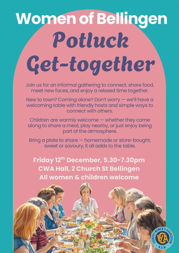 “We heard loud and clear that women want informal catchups, shared meals, and welcoming spaces where it’s easy to meet others,” said Kaye Guinness, Bellingen CWA President. “So, we’re starting with exactly that.”