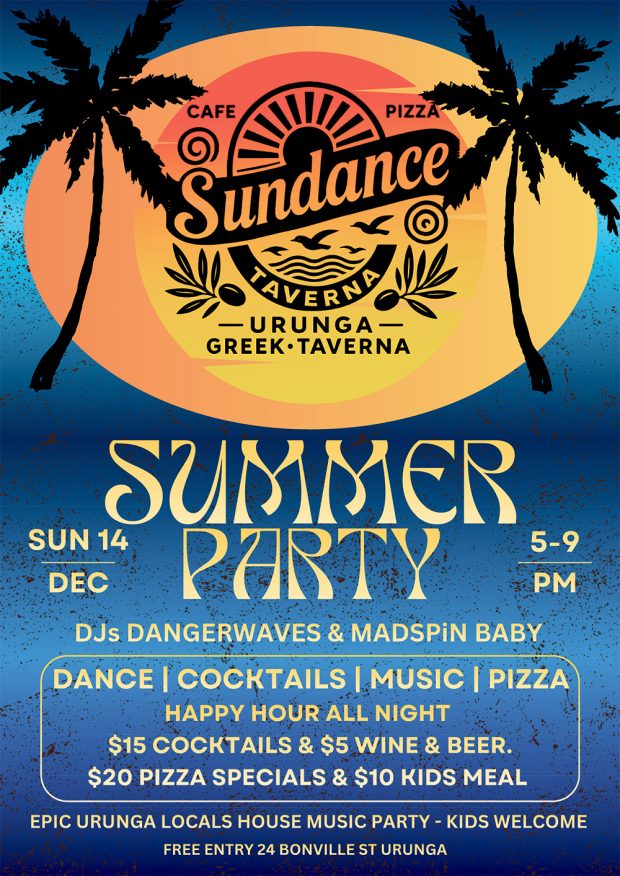 Summer Party Sunday 14th December 5-9pm. Dance | Cocktails | Music | Pizza. Post navigation UrungaLights Carols in the ParkIllusionaire ‘Mime and Magic’