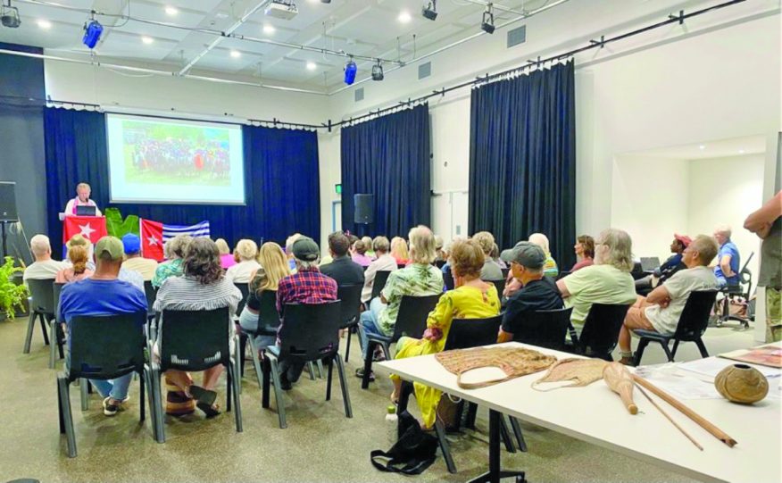 A live phone-in to Ghanaian musician and human rights advocate King Jomo Hutaa updated the gathering on the campaign in Ghana, supported by the Bellingen Environment Centre and Bundagen Community, to bring West Papua’s case before the international court.