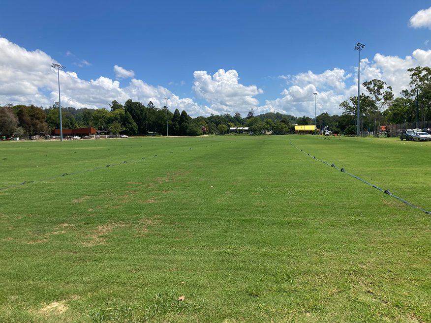 Council General Manager Mark Griffioen explained that temporary construction fencing remains to restrict people from going onto the field and potentially damaging the establishing turf.