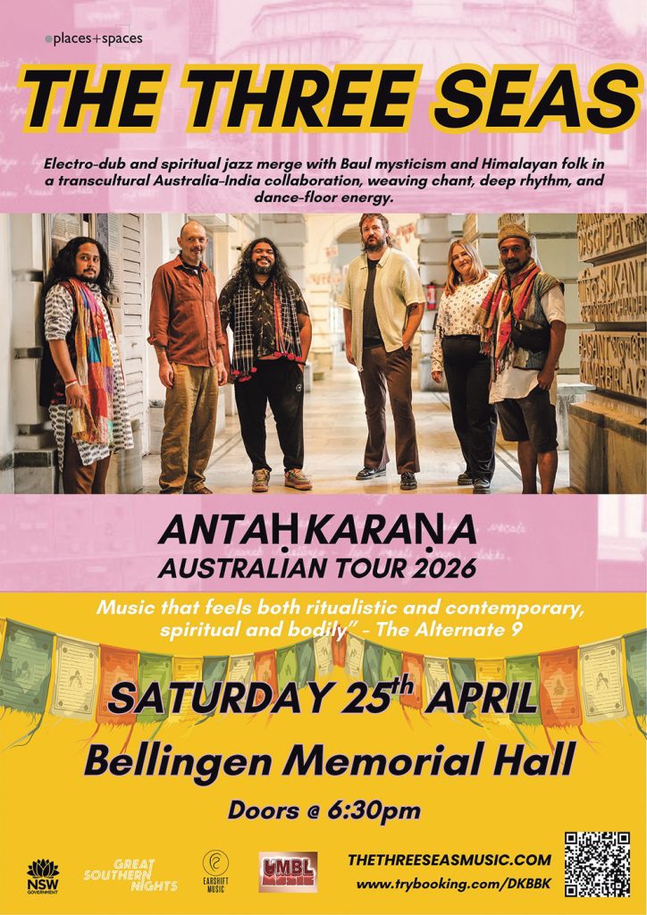 You can catch this great act in the evening at Bellingen Memorial Hall on the 25th of April, This performance is part of The Three Seas’ national tour supported by Creative Australia, Sound NSW and the Freedman Foundation. Presented by UMBL Music