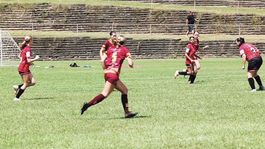 The Urunga Raiders (red and yellow) claimed the Women’s Challenge Cup with a composed 2-0 win over the Macleay Valley Rangers (white and blue) after three days of action at Nambucca Strikers’ home ground, Coronation Park.
